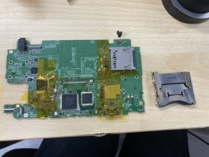 3DSLLのソフトトレーのパーツは本体のメインの基板にはんだで溶接されているパーツとなります。