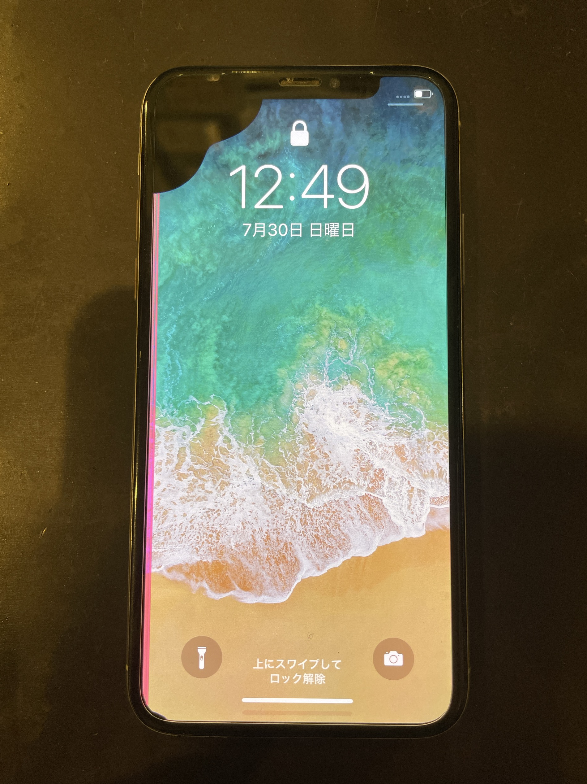 iPhoneX 転落して画面の左上が割れてしまったiPhoneX!画面交換できれいに治りました!