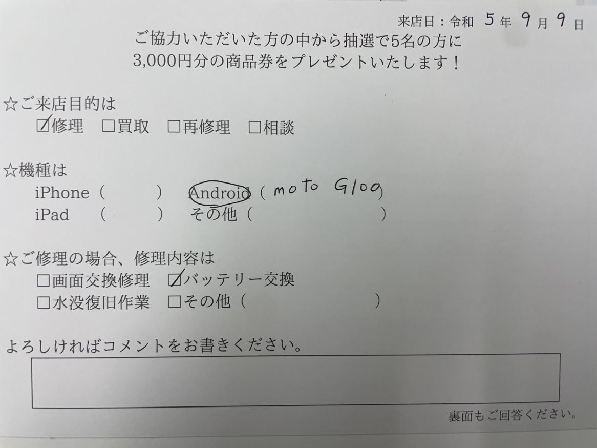 スマホスピタル天王寺ミオ (お客様の声)Moto G100 のバッテリー交換を行いました。