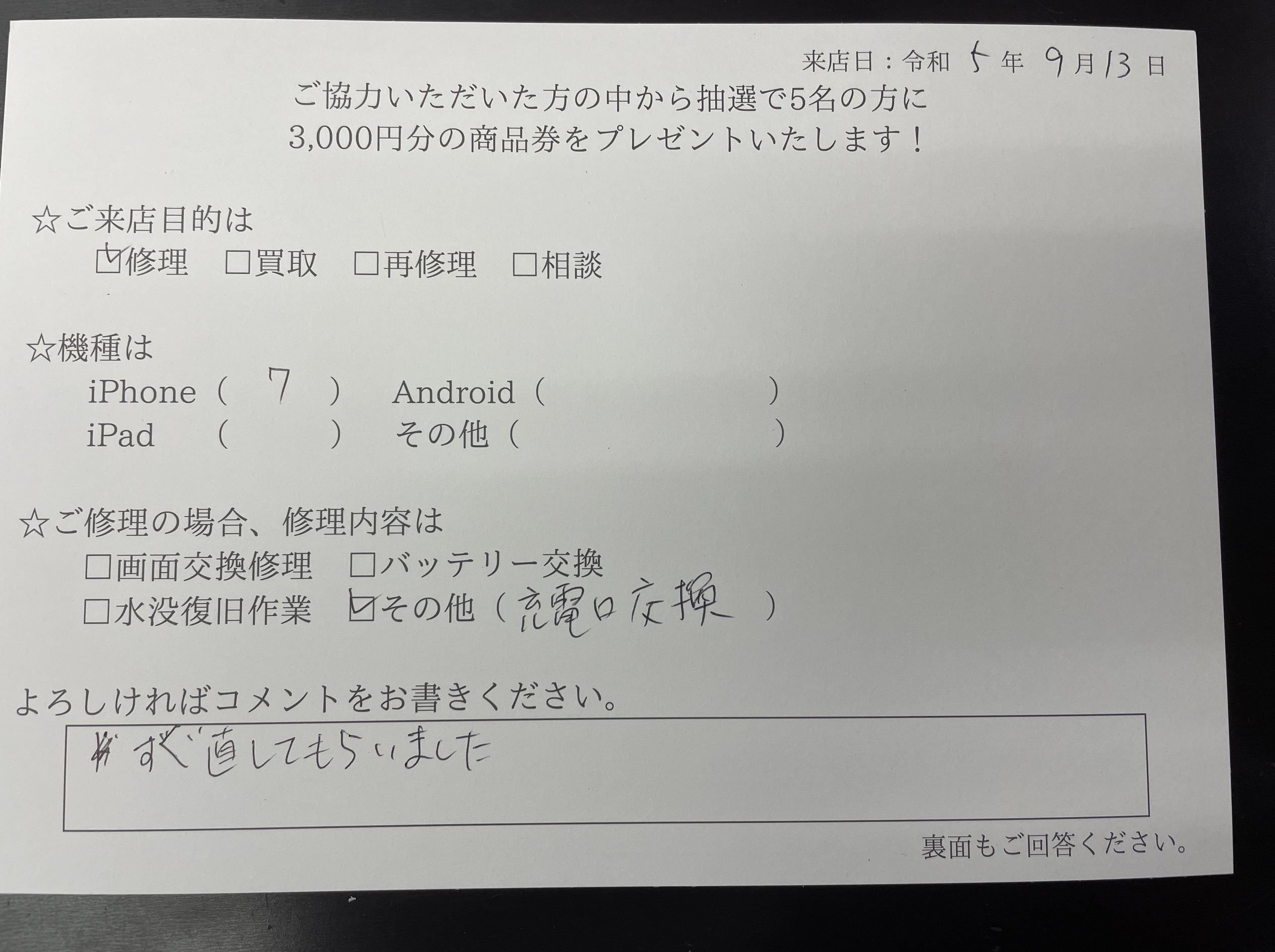 スマホスピタル天王寺ミオ iPhone7のバッテリー交換をしてもらいました