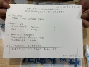 スマホスピタル天王寺ミオ iPhone XS Maxのバッテリーを交換しました!