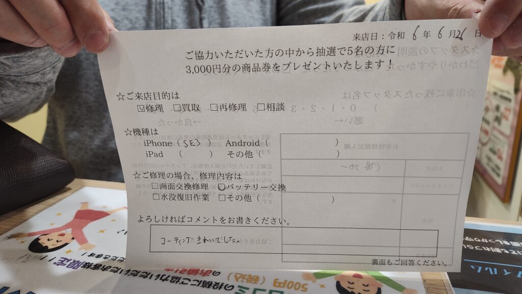 スマホスピタル天王寺ミオ iPhone SE(第3世代)のバッテリーの交換とガラスフィルムの貼替えを行いました!