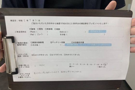 弊社の修理サービスをご利用いただいきましたお客様の声です。