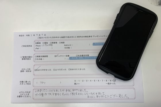 iPhone11ProMaxのバッテリー交換を承りました