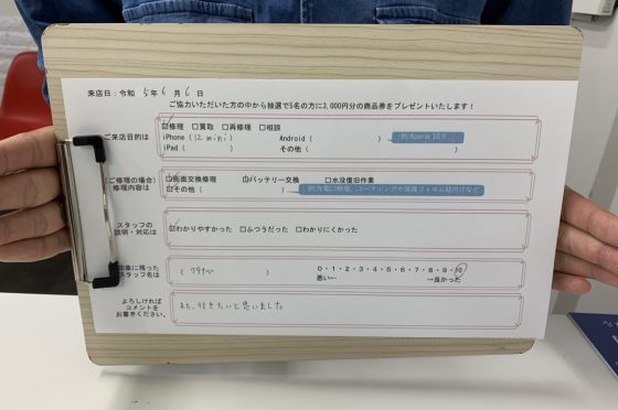 弊社の修理サービスをご利用いただいきましたお客様の声です。