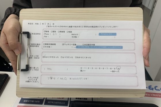 弊社の修理サービスをご利用いただいきましたお客様の声です。