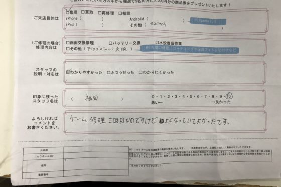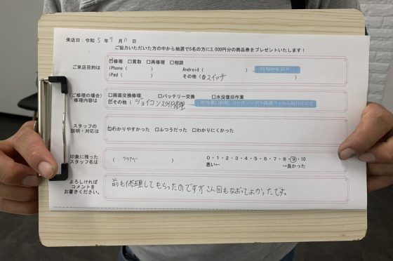弊社の修理サービスをご利用いただいきましたお客様の声です。