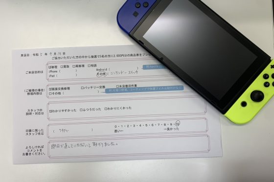 NintendoSwitch液晶交換修理を承りました