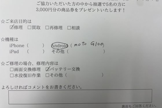 (お客様の声)Moto G100 のバッテリー交換を行いました。