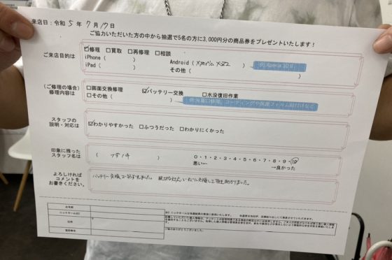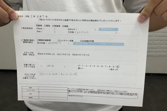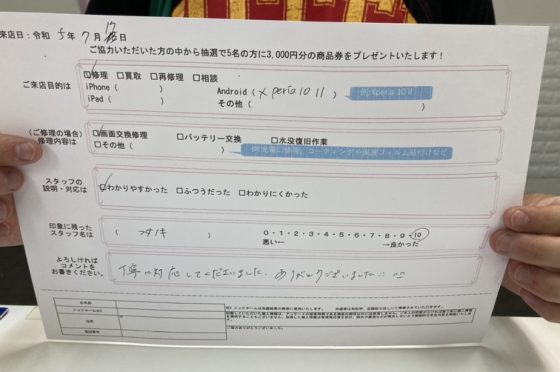 弊社の修理サービスをご利用いただいきましたお客様の声です。