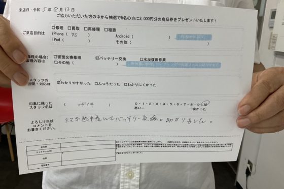 膨張したiPhoneXsのバッテリー交換をしていただきました。