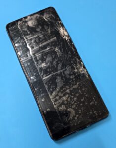 全体的に画面が割れており、液晶も映らなくなってしまっています。