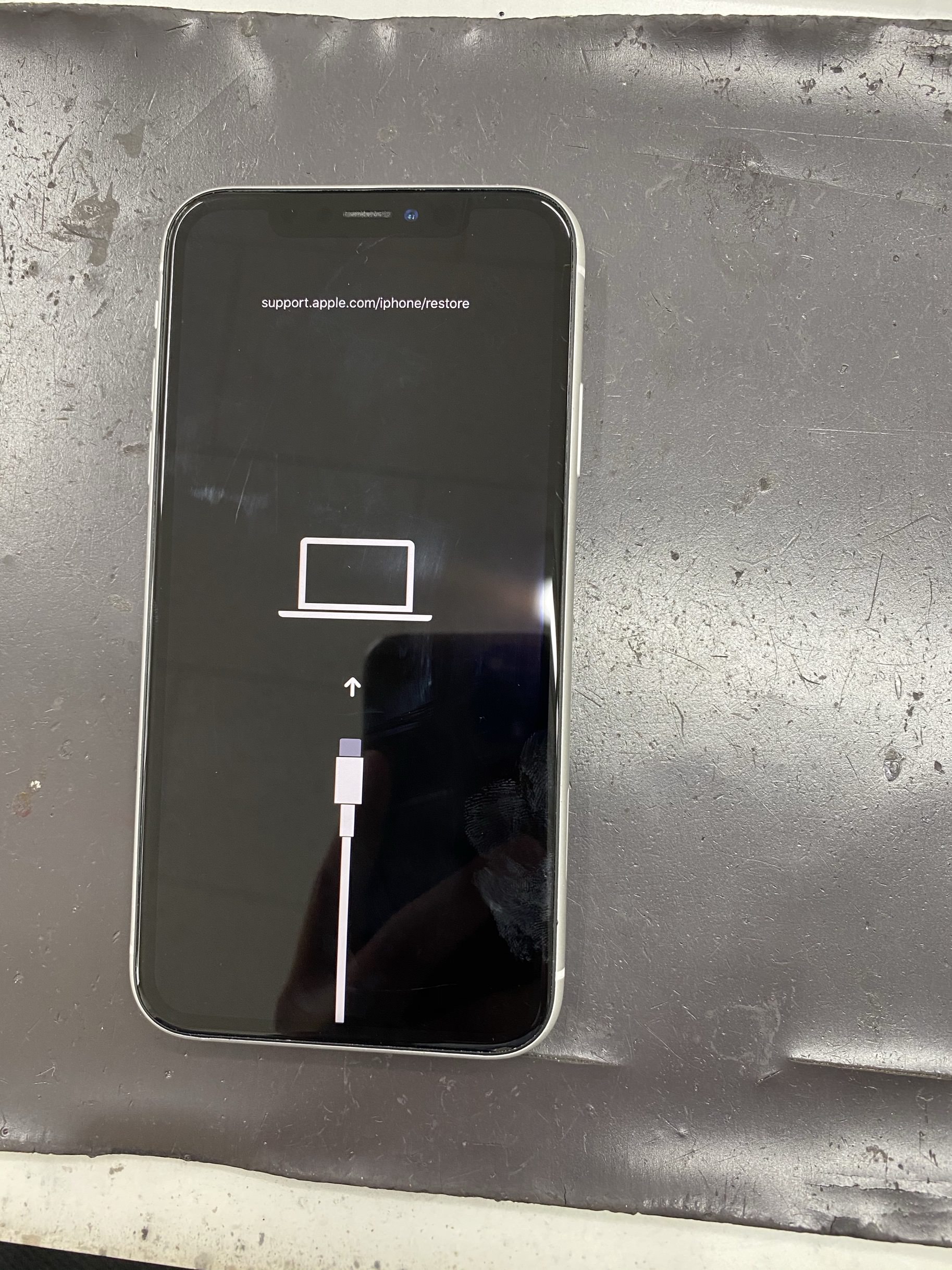 この状態に持っていくには音量ボタンの+、-を順番に押した後電源ボタン長押しした状態で、あらかじめiTunesに接続しておいたライトニングケーブル(iPhoneの充電ケーブル)につなぎますと復元作業ができます。