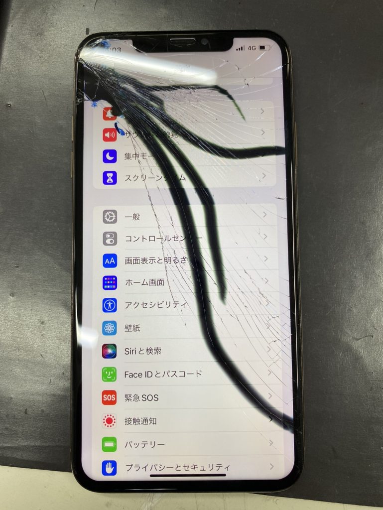 【iPhonexsMax】画面が割れてしまった!液晶にシミが出てゴーストタッチも…画面交換修理で綺麗に直りますよ!