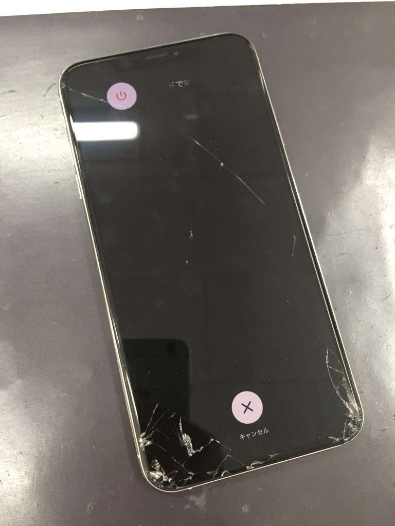 iPhoneXSMAX画面が割れてバキバキになってしまった…データそのままで即日修理できますよ!