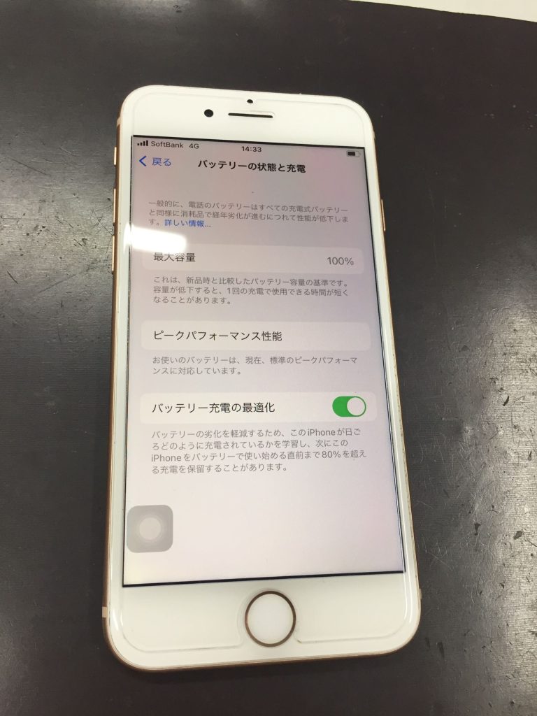 本日はiPhone8のバッテリー交換を行いました。