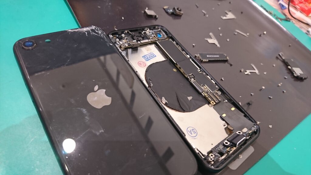 【iPhoneSE2】落としてしまってバックパネルが割れてしまった…データそのままで綺麗に修理が出来ますよ!