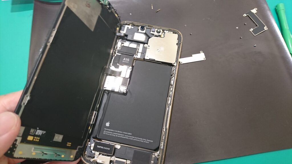 iPhone13ProMaxの分解はまずは画面を本体から取り外します。