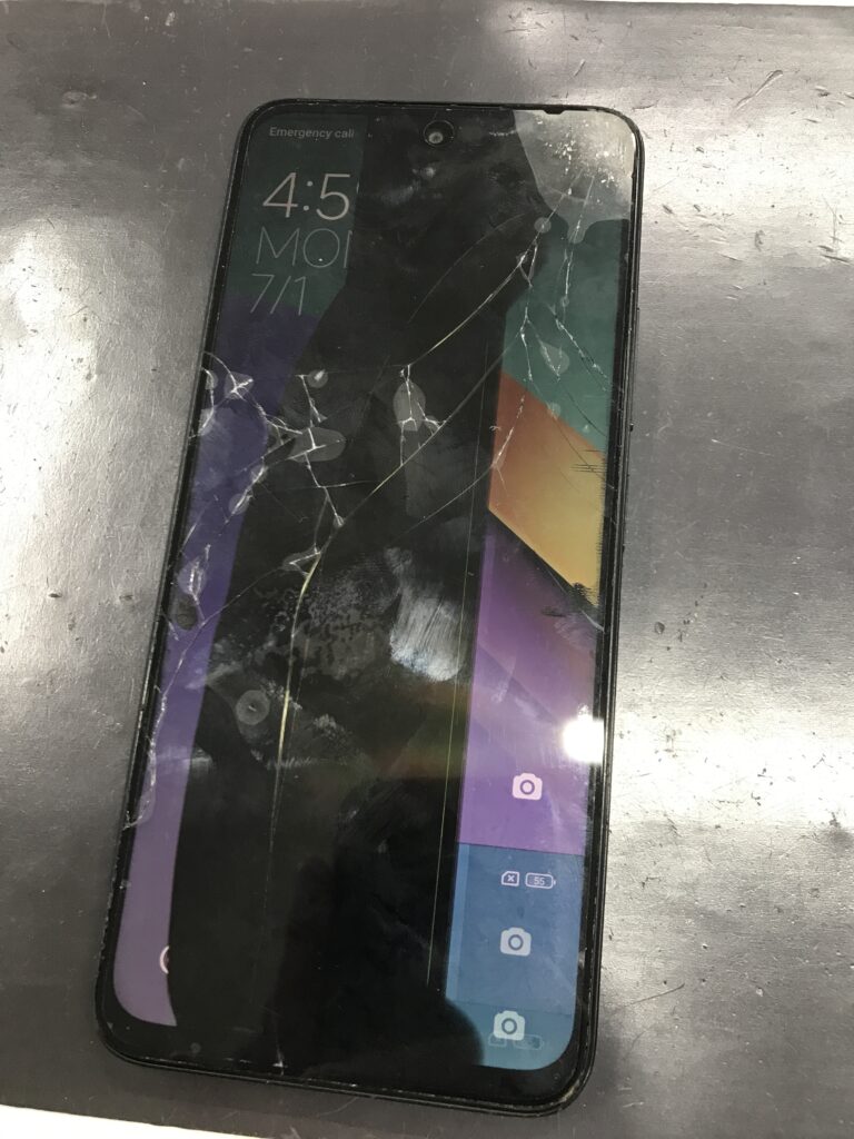 【Redmi12 5G】画面が割れたうえに液晶に黒いシミが…画面交換修理で綺麗になりますよ!