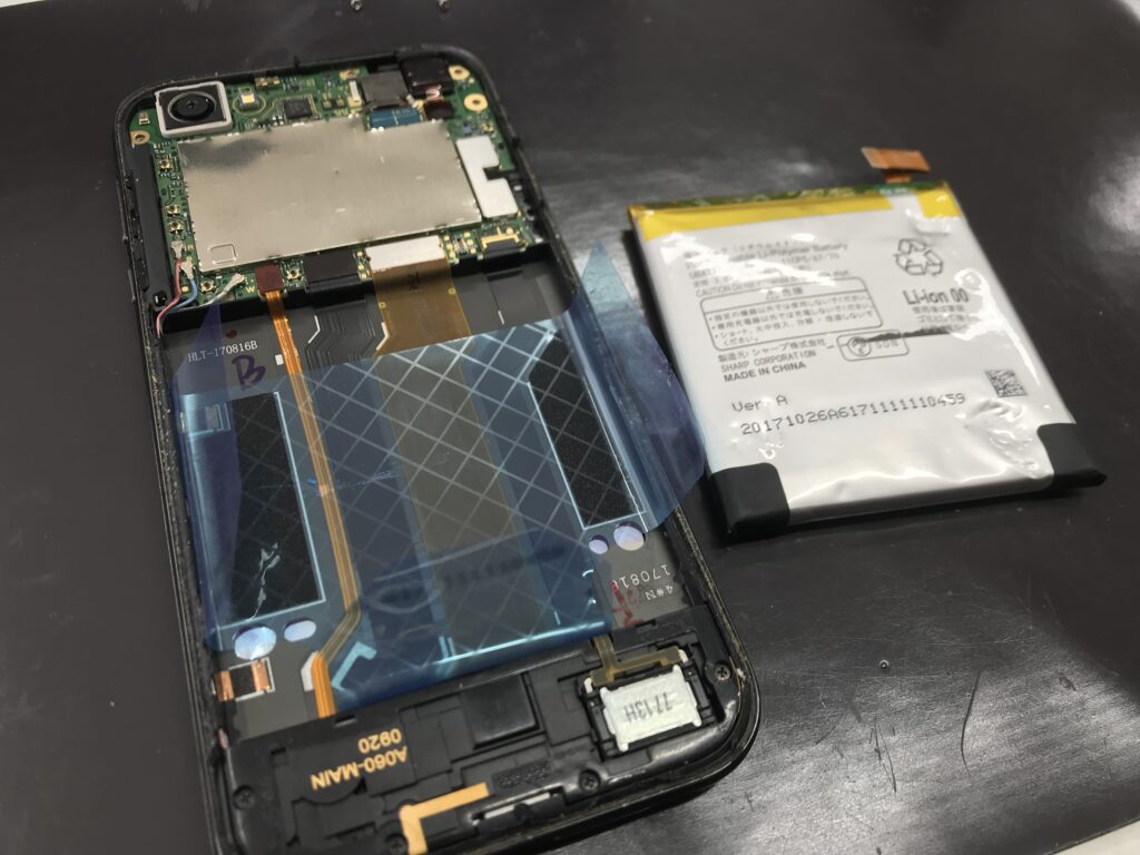 本日バッテリー交換を行うAQUOS Rもバッテリーがかなり膨張しておりました…
