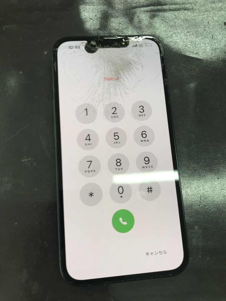 【iPhone14】落下により画面が割れてしまった…!即日修理できますよ!