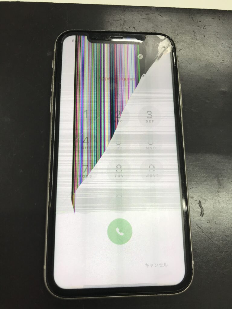 画面の破損はよくご相談頂くのですが、強い衝撃を受けてしまうと液晶にも不具合が出てしまいます。
