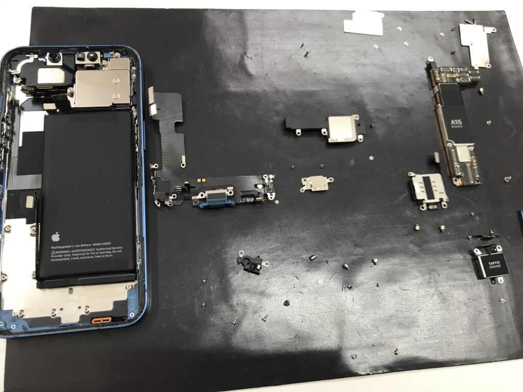 充電口の交換作業は、多くのパーツを分解する作業になります。