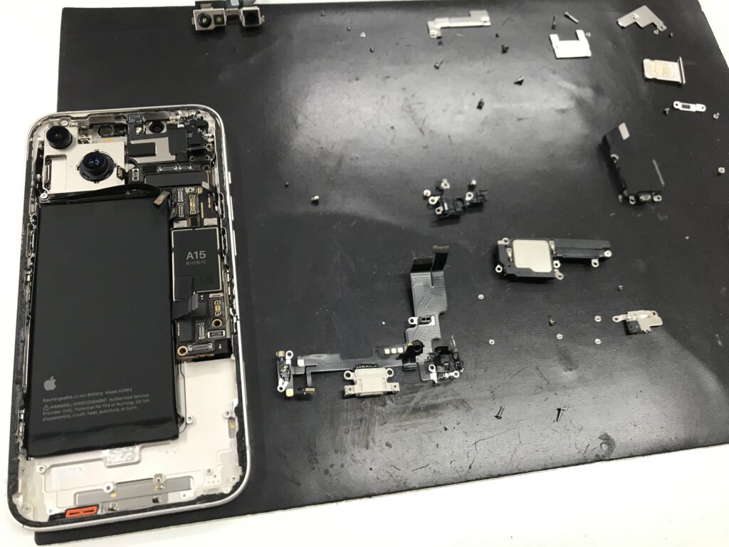 充電口の交換の場合、多くのパーツを取り外して交換作業を行うことになります。