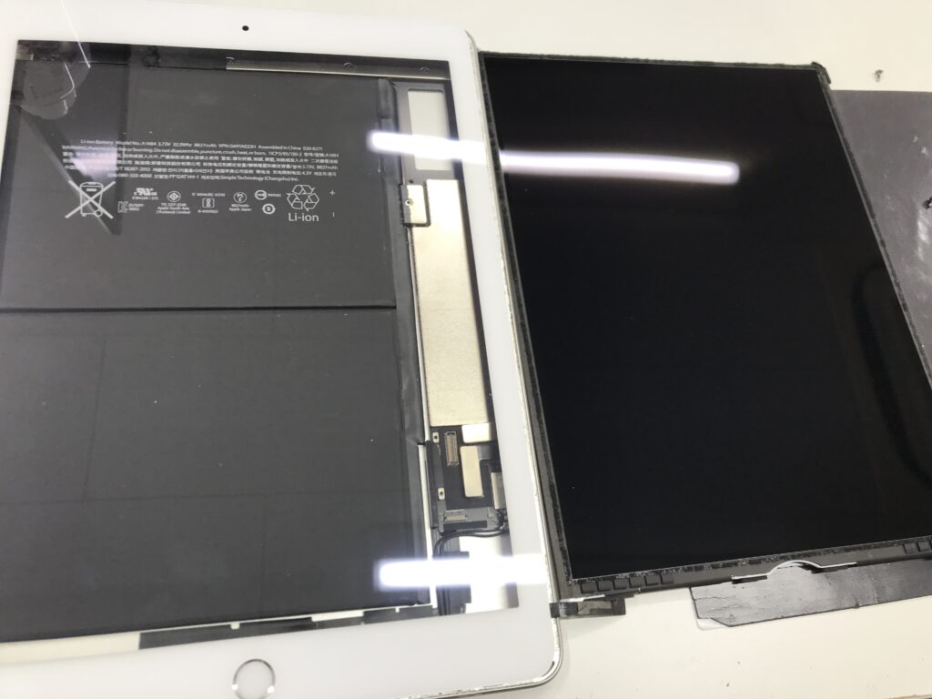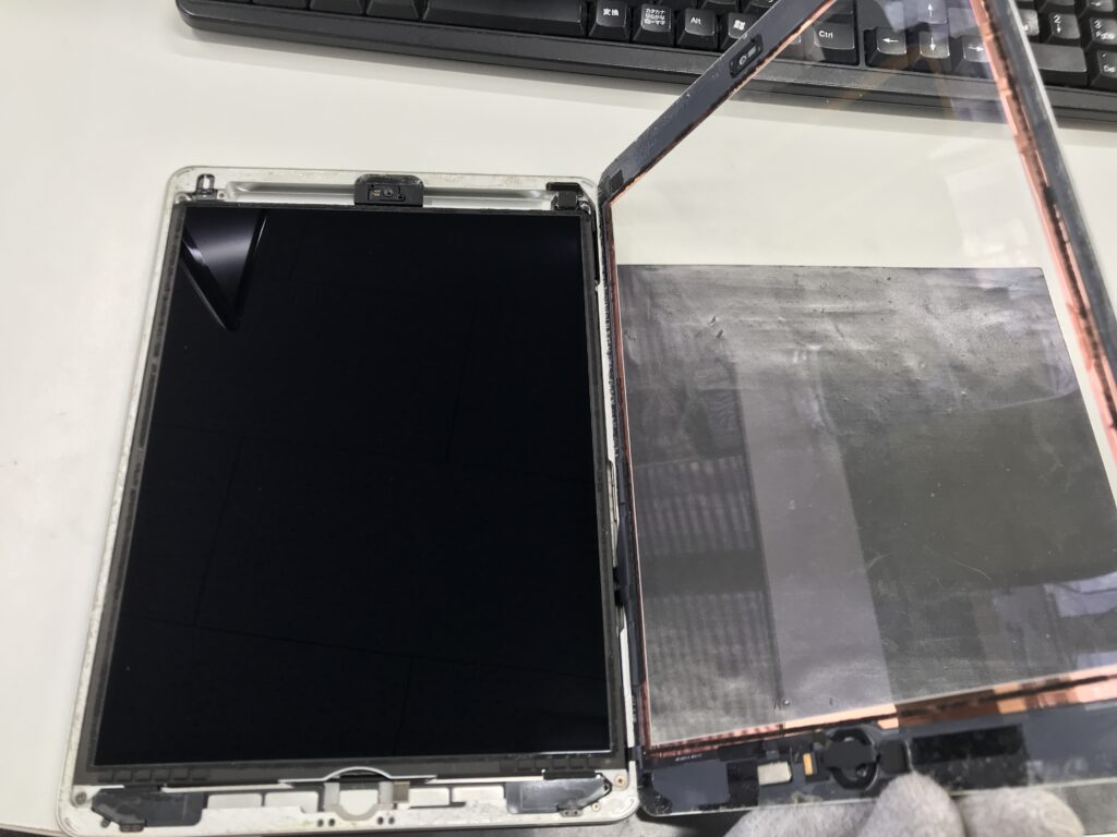 ですがiPadは画面が本体に粘着で貼りついているのでiPhoneよりも開けずらい構造になってます。