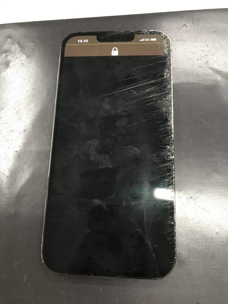 【iPhone13ProMax】落下後端末が引きずられて傷だらけに故障してしまった…!即日修理できますよ!