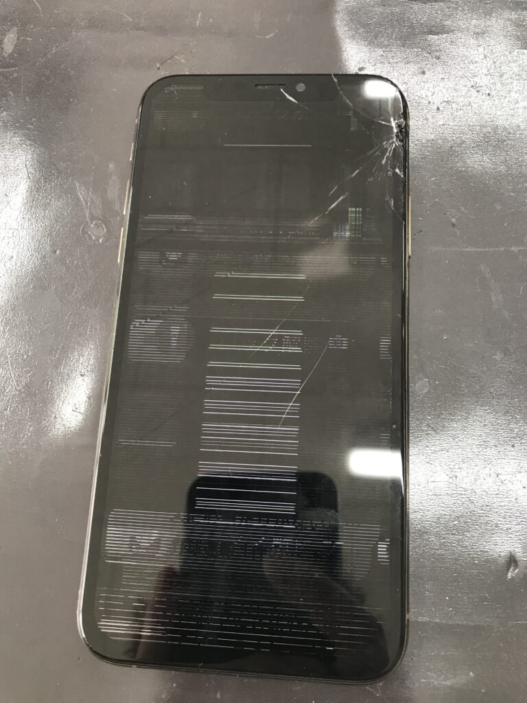 今回お持ちいただきまいたiPhoneXsですがまずは修理前の状態がコチラです。