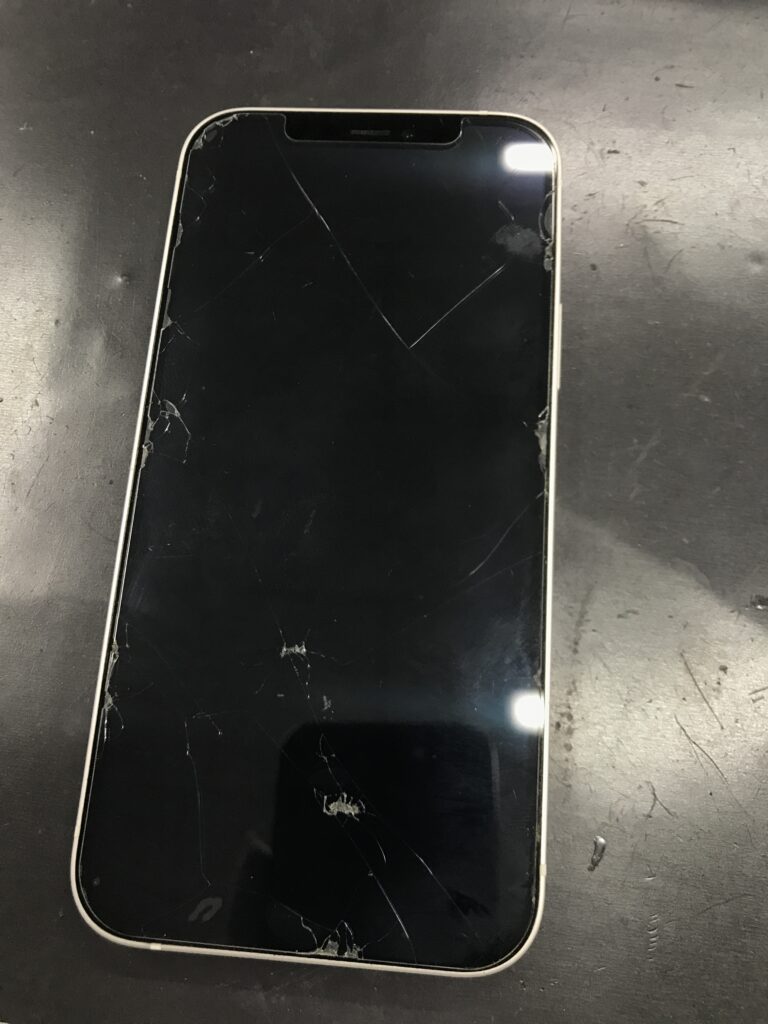 【iPhone12】画面がバキバキに割れて映らなくなった…即日修理で綺麗になりますよ!