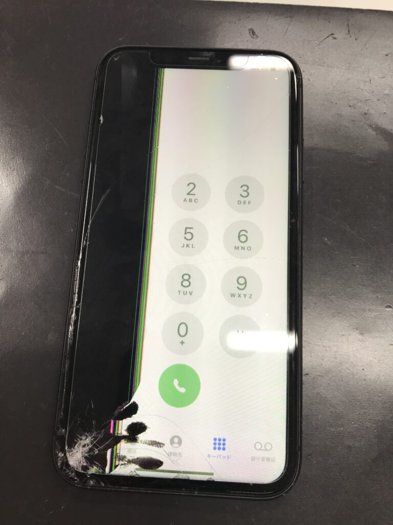 【iPhone11】落としてしまい液晶画面の左側が真っ暗に…データそのままで修理出来ますよ!