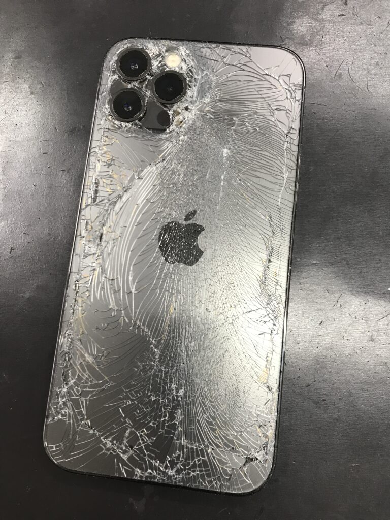 【iPhone12Pro】背面ガラスがバキバキに割れてしまった…背面修理も対応しております!
