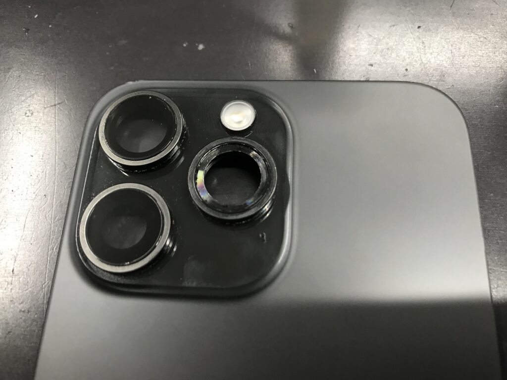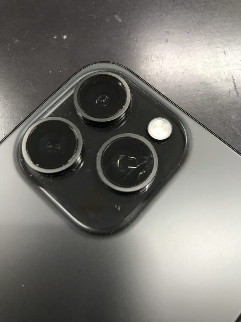 【iPhone15ProMax】広角カメラレンズに割れが入ってしまった…カメラレンズ交換で綺麗に直せますよ!
