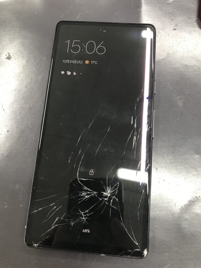 【Pixel7a】落としてしまい画面に白い線が出てしまった…即日修理で画面交換させて頂きました。