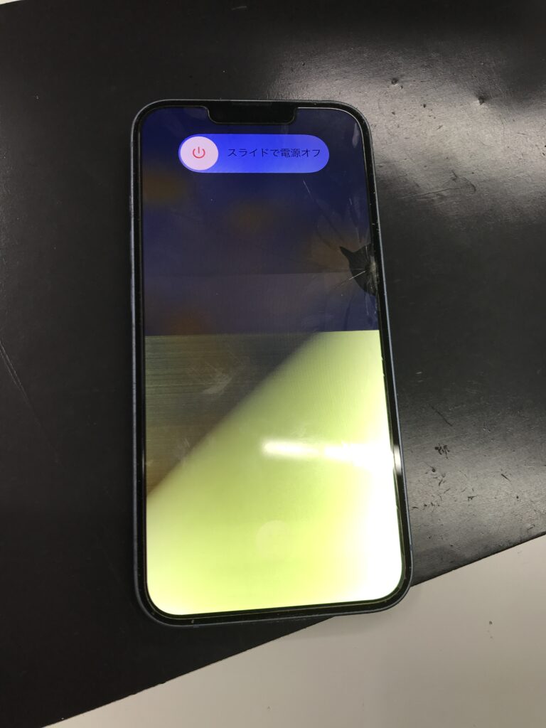 【iPhone14】落としてしまって画面の半分が緑色になった…データはそのままで即日修理出来ますよ!