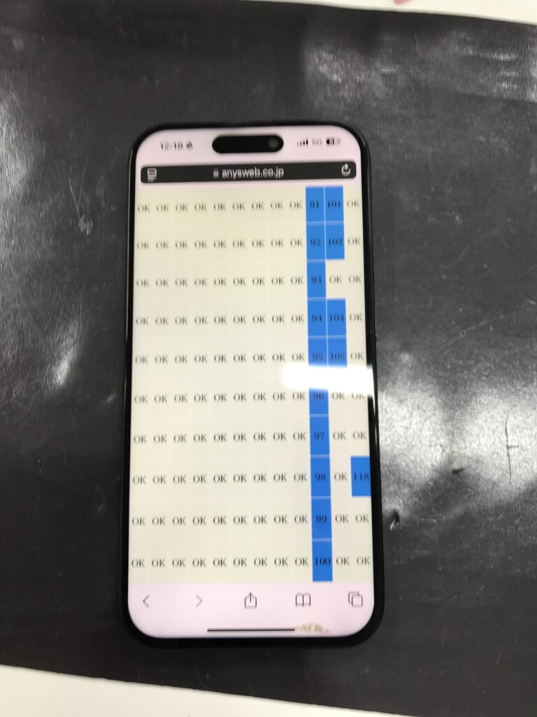 タッチが反応した箇所は「OK」と表示されるのですが一部OK表示になっていない箇所があります。