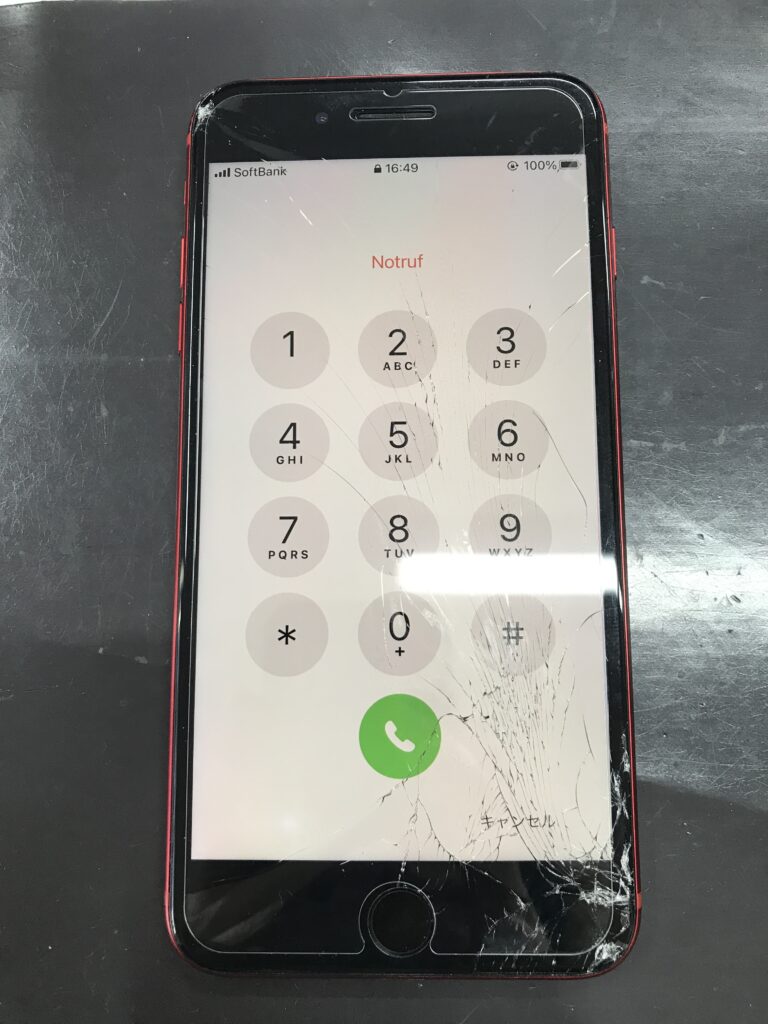 【iPhone8plus】落としてしまって画面がバキバキに割れてしまった…即日修理で綺麗になります!