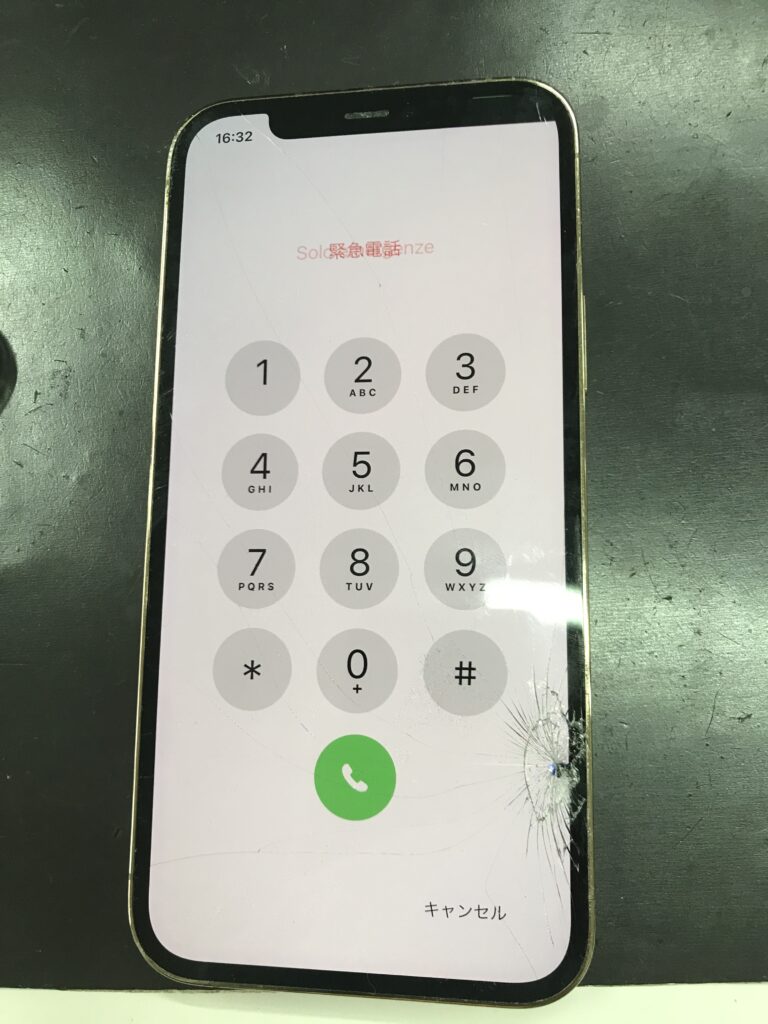 今回、お使いのiPhone12Proの画面に物がぶつかってしまい割れてしまったそうです。