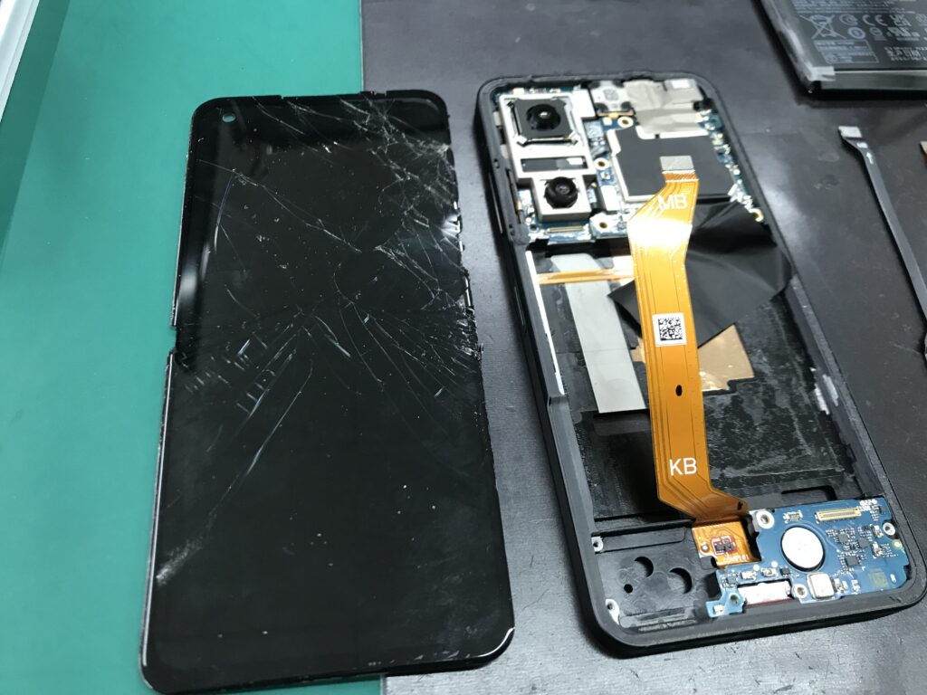 【Zenfone9】落とした衝撃で画面がバキバキに割れてしまった…綺麗に修理出来ますよ!