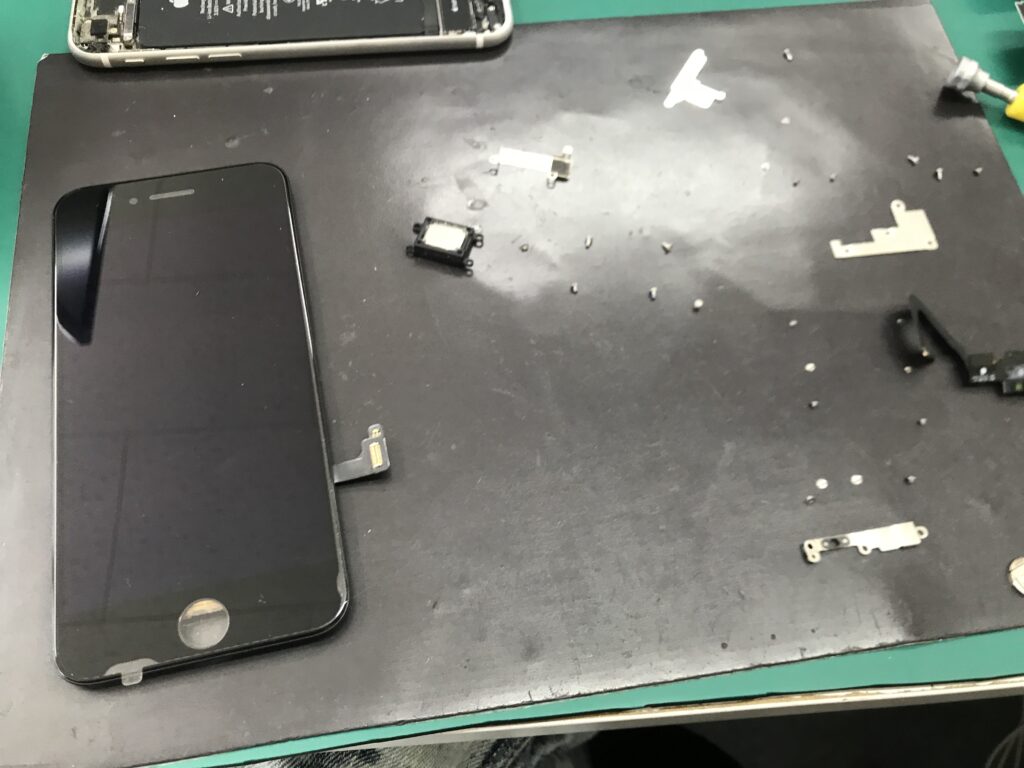 画面交換修理で最初に外すパーツが画面となるので修理は比較的簡単ですね。