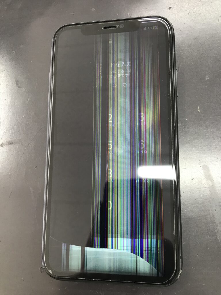 今回、ご相談いただいたiPhone11は落としてしまって画面がおかしくなったそうです…