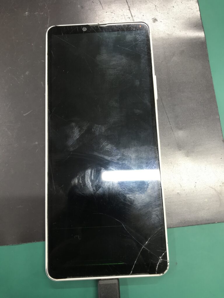 【Xperia10Ⅲ】落としてしまった画面が真っ暗に…データはそのままで画面交換修理させていただきました。