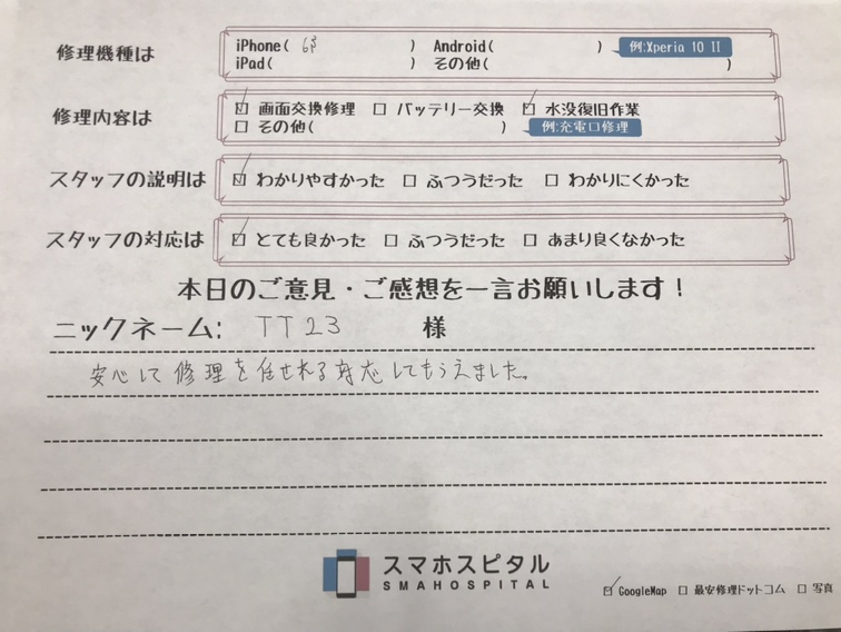 安心して修理を任せられる対応をしてもらえました!