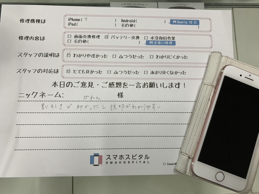 スマホスピタル 大阪梅田 iPhone 7のバッテリー交換しました!【2022年2月15日】