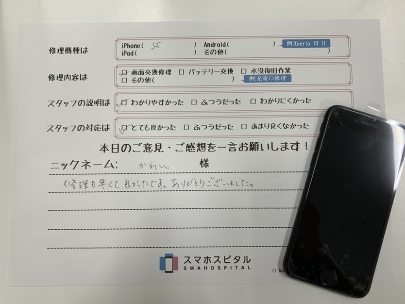 スマホスピタル 大阪梅田 iPhone SE2の画面交換しました!