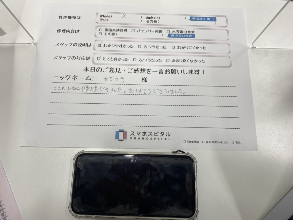 スマホスピタル 大阪梅田 iPhone X のバッテリー交換を行いました。