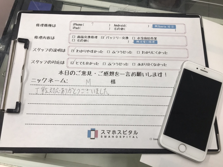 スマホスピタル 大阪梅田 iPhone7のバッテリー交換をしました!