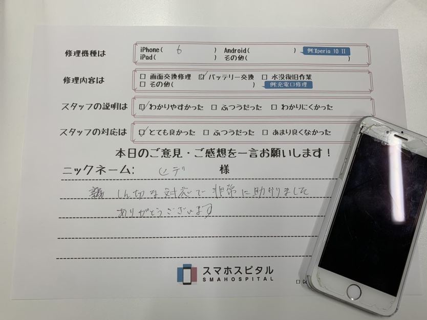 スマホスピタル 大阪梅田 iPhone 6のバッテリー交換しました!